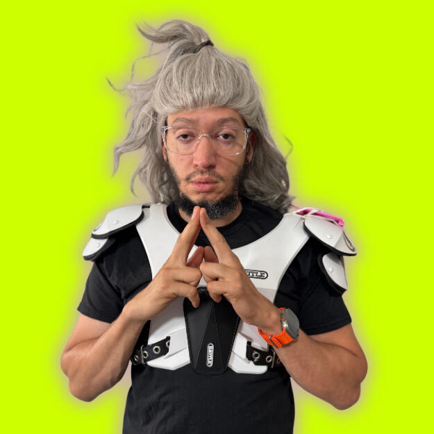 Absurd 5–10s lessons nobody asked for—delivered in full gear with a smug pause.